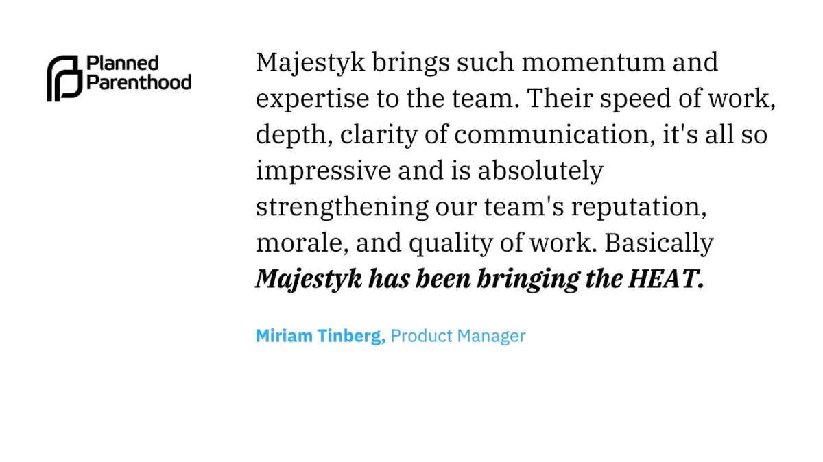 Majestyk is a mobile app development team behind apps with 200M+ downloads and 10M+ daily active users. We build on iOS, Android, and cross-platform